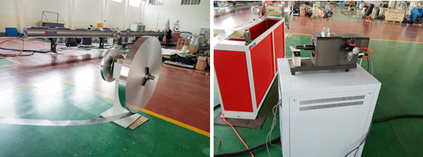 1) This high efficient extruder is special designed by our company with independent intellectual property rights. The necessary technologies of high speed & stable production of composite pipes have been privatized in the die head mold, calibrating& cooling system, Haul-off system and cutting system.